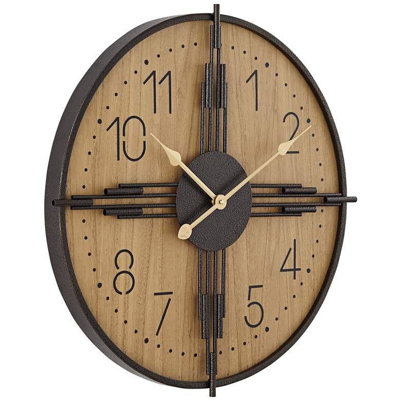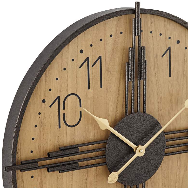 York 23.5" Round Matte Wood Antique Bronze Battery Powered Wall Clock