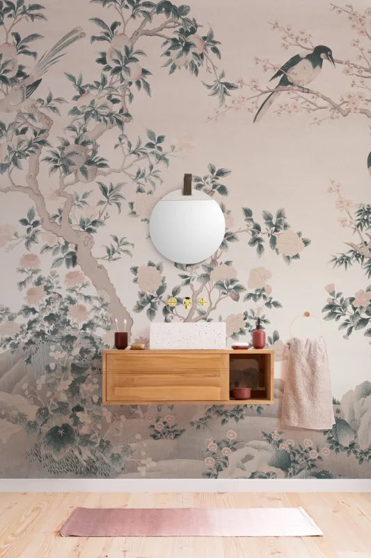 Repeat pattern wallpaper is the traditional style wallpaper as we’ve always known it. A repeat design that is printed onto rolls, and the number of rolls is determined by the size of the surface that you’re covering.