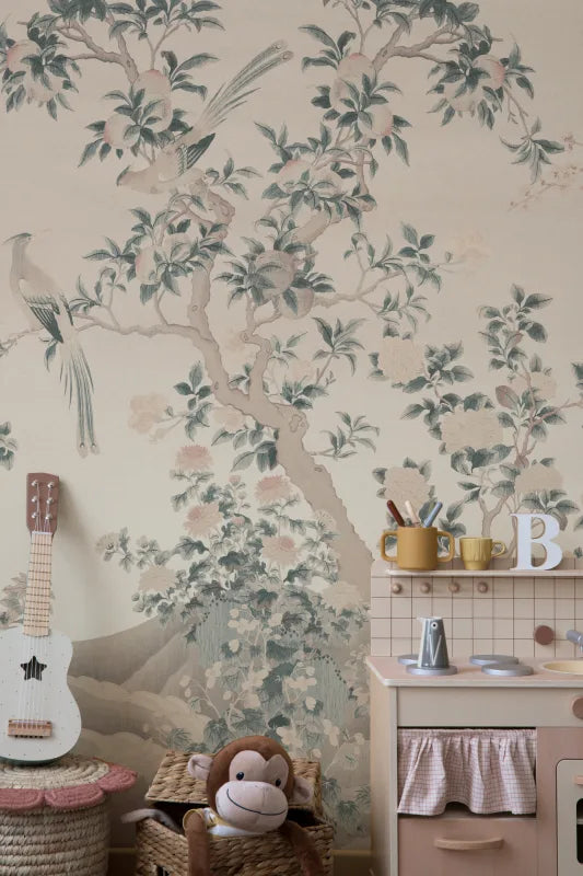 A mural is a wallpaper printed in strips that all fit together to create one large image or design, typically on one wall. Murals are custom-fit to any wall size.