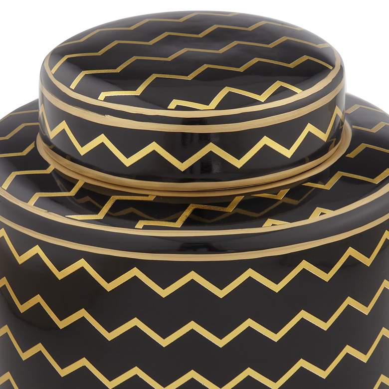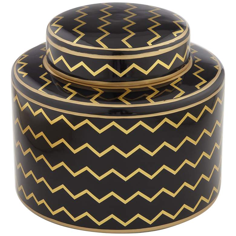 Zig Zag Black and Gold 7" High Decorative Jar with Lid